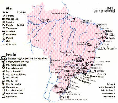Leader industriel de l'Amérique latine, le Brésil est riche en minerais de toutes sortes qui sont loin d'être tous exploités. L'essor industriel est remarquable, tant sur les plans sidérurgiques que mécaniques. Le SUD-EST, la région la plus importante et la plus développée du Brésil, est le centre politique, économique, culturel, scientifique et technologique du pays.